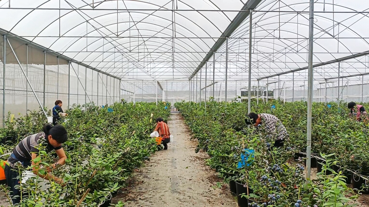 藍(lán)莓園一派熱火朝天采收景象。