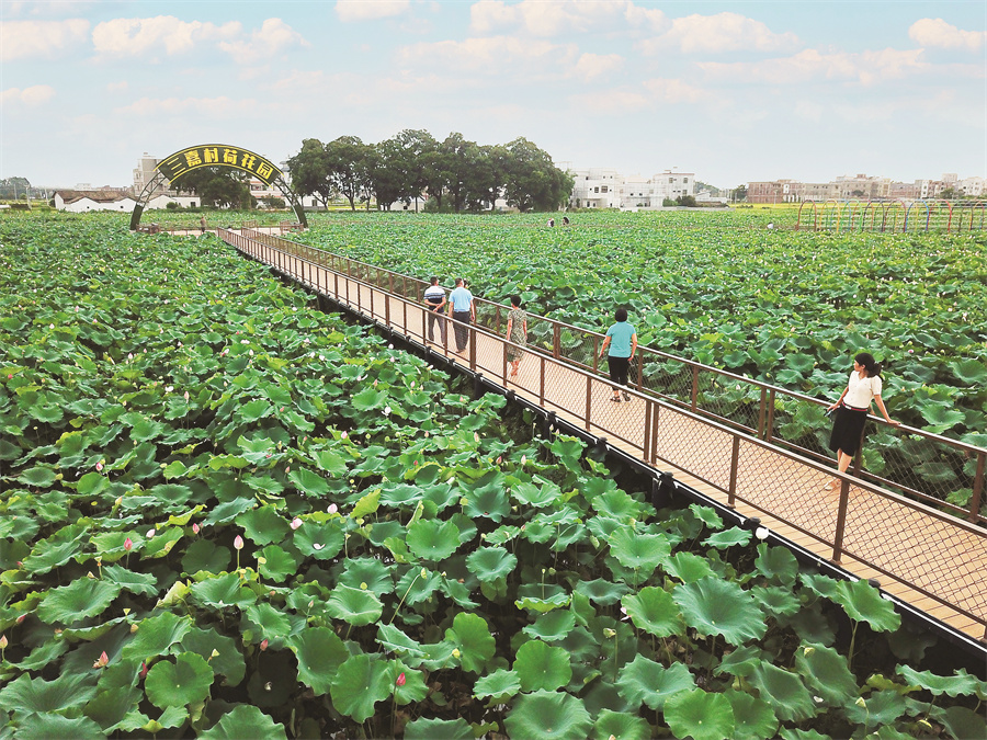 石壩鎮(zhèn)三嘉村荷花園;葜輺|江圖片社供圖