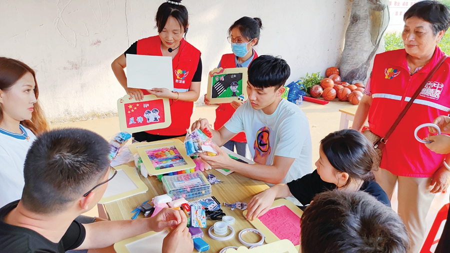 徐杰和球迷、志愿者一起制作反詐剪紙作品。 惠州日報記者盧泓宇 攝