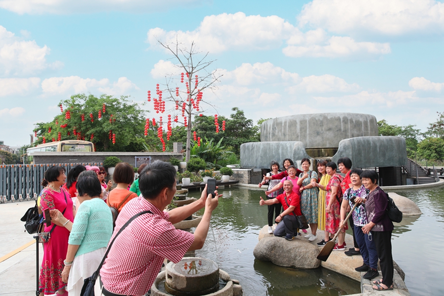 文韻醇厚,山川如黛。在博羅縣龍華鎮(zhèn)的旭日古村,每到周末都有不少游客前來領(lǐng)略古村風(fēng)采。在這里,枝繁葉茂的榕樹與春日暖陽相映成趣,樹蔭透著陽光映射在該村“蔚園”古建筑上,無聲地訴說著鄉(xiāng)村的魅力,慕名而來的游客紛紛在此拍照合影。近年來,乘著鄉(xiāng)村振興的東風(fēng),龍華鎮(zhèn)全面優(yōu)化提升旭日古村落綜合環(huán)境,恢復(fù)性修繕3處省級(jí)文明保護(hù)單位,吸引了眾多游客紛至沓來,當(dāng)?shù)氐霓r(nóng)特產(chǎn)品也帶動(dòng)村民在家門口實(shí)現(xiàn)增收。