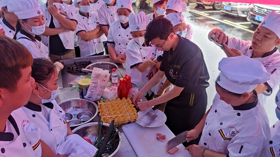 備料、切菜、起鍋、燒油……手起刀落間,一道色香味俱全的吉列豬扒就制作完成。“今天學(xué)到了很多。”來自龍溪街道岐崗村的學(xué)員謝志軍是一名有著多年經(jīng)驗(yàn)的餐飲從業(yè)者,在活動中頻頻與老師互動,請教不同菜式的烹飪心得!帮嬍臣妓囀菬o止境的,所以我想通過這次活動跟老師多多學(xué)習(xí)!彼f,聽聞活動第一時間就報名參加了。“希望在后續(xù)的課程里學(xué)到更多的菜式和更多的技巧,不斷提升自己的廚藝!