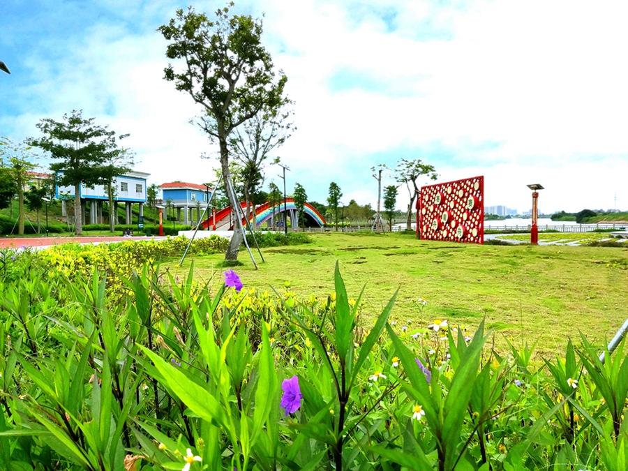 在紅旗二路,綻放的鮮花為道路增添了色彩;在東坡公園,錯(cuò)落有序的樹(shù)木與彩虹橋互相映襯;在沙河旁,盈盈的河水與岸邊的花草相得益彰……一幅幅美麗的畫面勾勒出綠美石灣的夏日風(fēng)景圖。