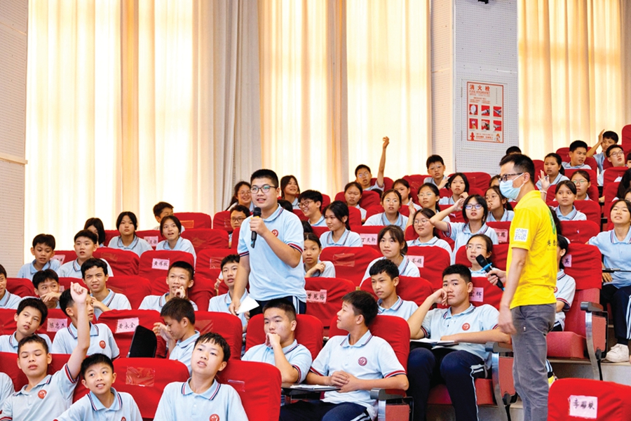 在博羅中學(xué)佳兆業(yè)學(xué)校的法治安全課上,博羅法院干警與學(xué)生互動(dòng)。
