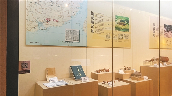 惠州市博物館《東江流域的文明》展廳,陳列著梅花墩窯址出土文物