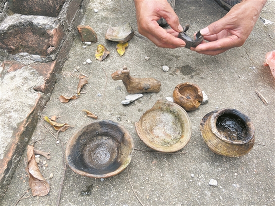 梅花墩窯址出土的陶羊,由村民捐贈(zèng),現(xiàn)存放在園洲鎮(zhèn)文化館 莫樹華 攝