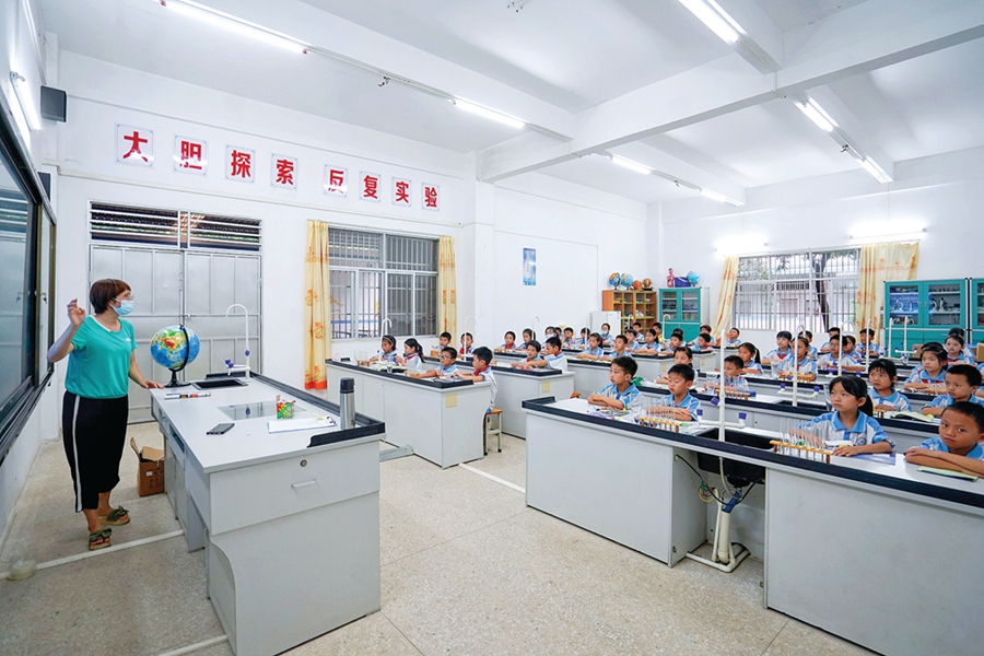 泰美中心小學(xué)的科學(xué)課堂上,老師正在給學(xué)生上課;葜萑請(bào)記者湯渝杭 攝