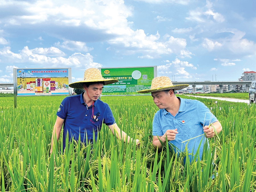農(nóng)技黨員干部到田間地頭給予技術(shù)指導(dǎo),推動(dòng)博羅縣絲苗米產(chǎn)業(yè)發(fā)展。
