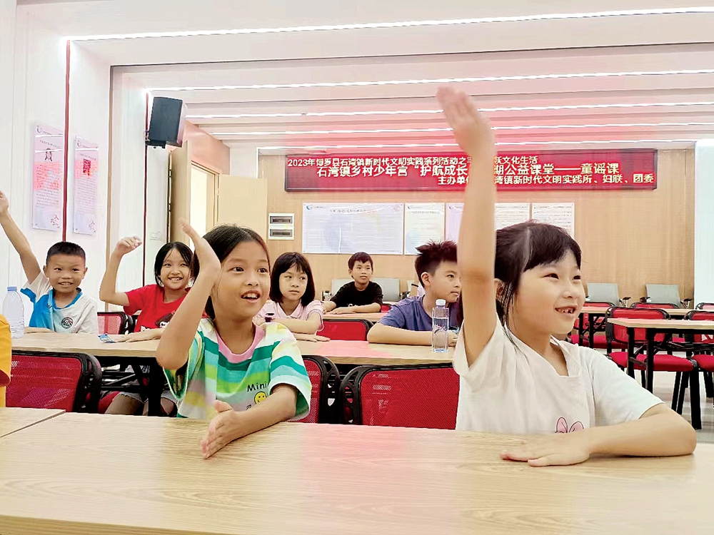 孩子們在公益課堂上學(xué)習(xí)童謠。 惠州日報記者李燕文 特約通訊員彭冬婷 通訊員陳艷婷 攝