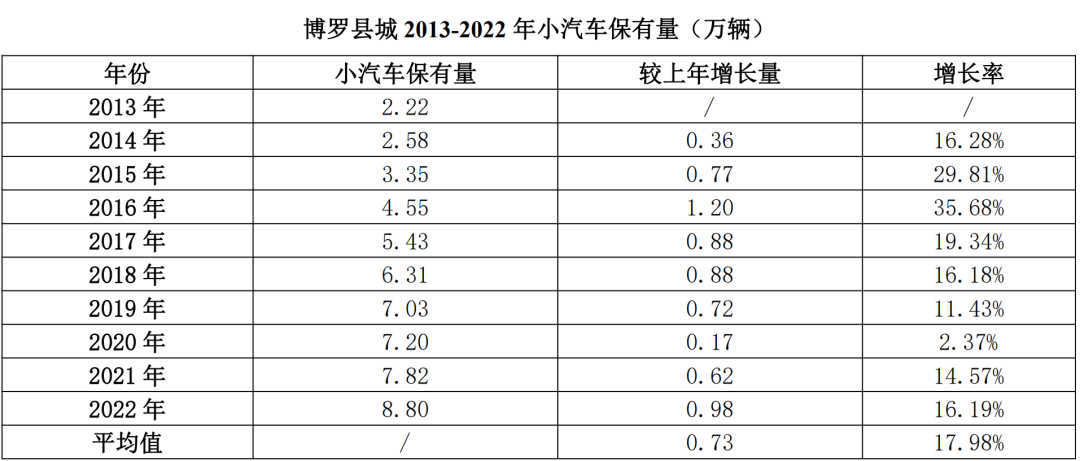 博羅縣城2013-2022年小汽車(chē)保有量情況一覽表。