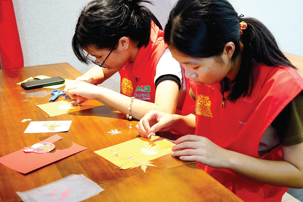 制作中藥書簽;葜萑請笥浾唿S桃 特約通訊員李淵 攝