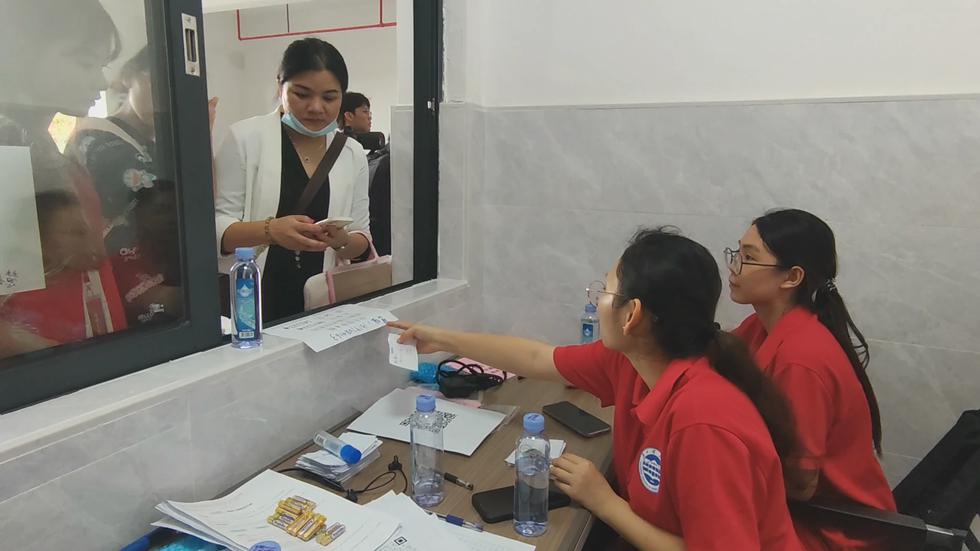 “同學(xué)你是哪個(gè)專業(yè)的?請(qǐng)到教學(xué)樓相應(yīng)的迎新教室進(jìn)行報(bào)到!痹趶V場(chǎng)外的校門,一輛輛從惠州火車站、惠陽(yáng)站等迎新站點(diǎn)駛來(lái)的大巴車,將新生與家長(zhǎng)送抵校門前。新生剛下車,便有志愿者迎上前來(lái),主動(dòng)引導(dǎo)著家長(zhǎng)與學(xué)生完成存包、報(bào)到、入住等事項(xiàng)。從空中俯瞰整個(gè)校園,在拉著大包小包行李的人群當(dāng)中,一抹志愿紅穿梭其中,成為了校園中一道亮眼的風(fēng)景線。