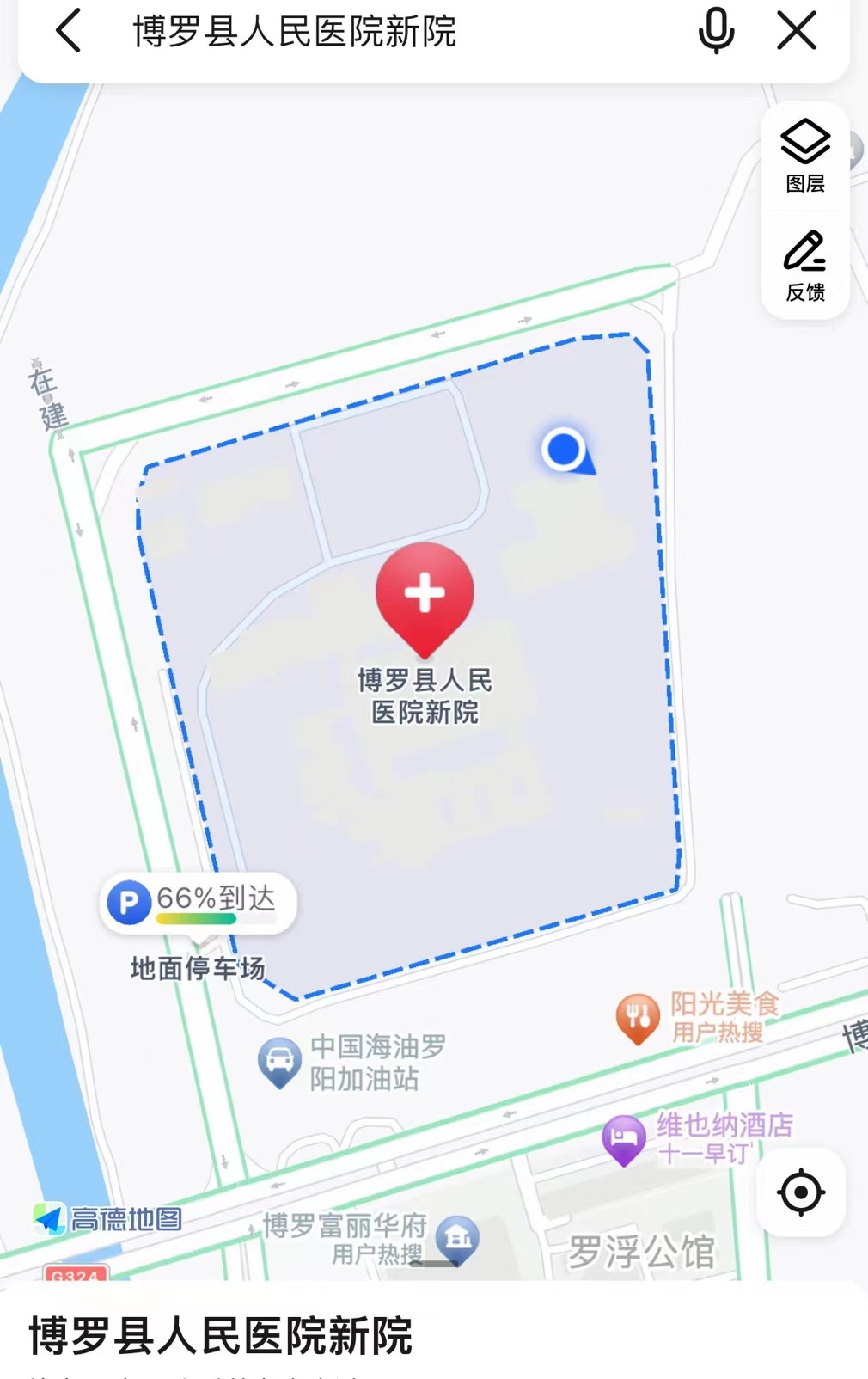 在地圖應(yīng)用輸入“博羅縣人民醫(yī)院新院”即可導(dǎo)航到達(dá)。