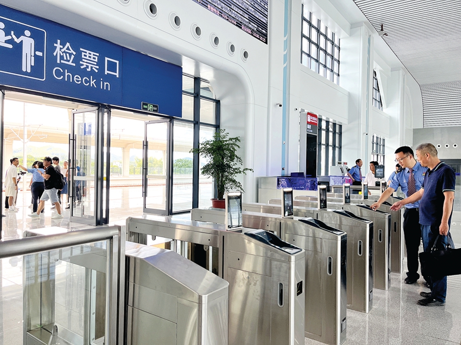 旅客刷身份證進入站臺。 惠州日報記者黃桃 攝