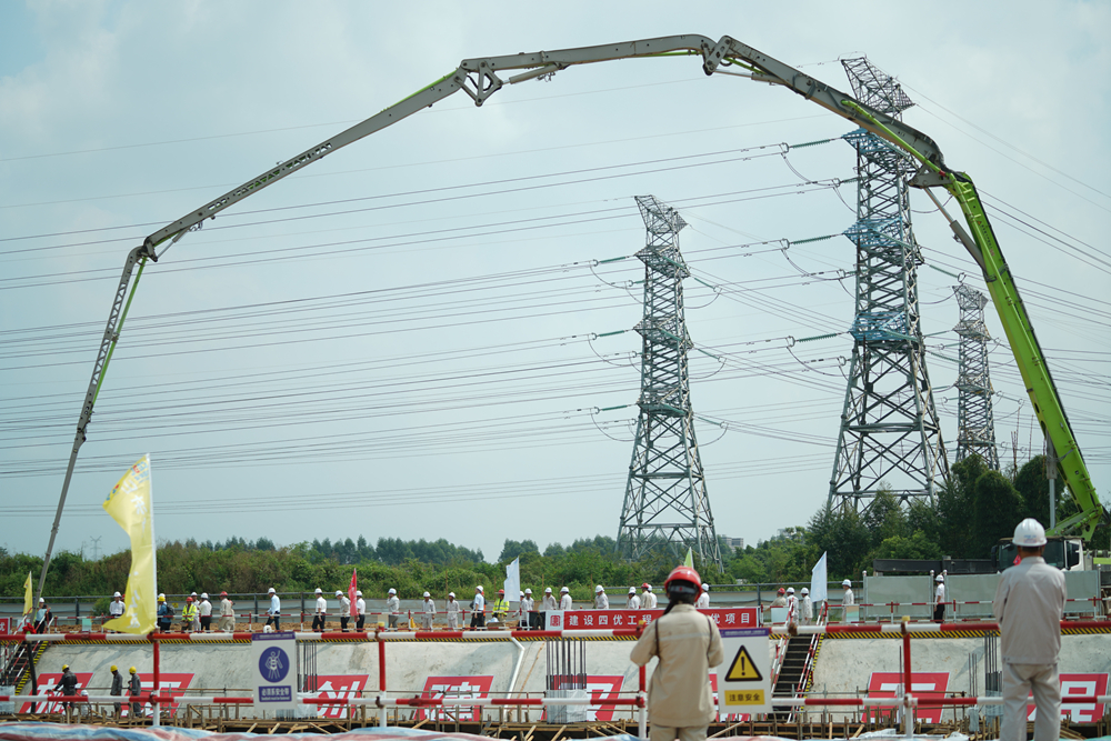 混凝土澆筑現(xiàn)場。