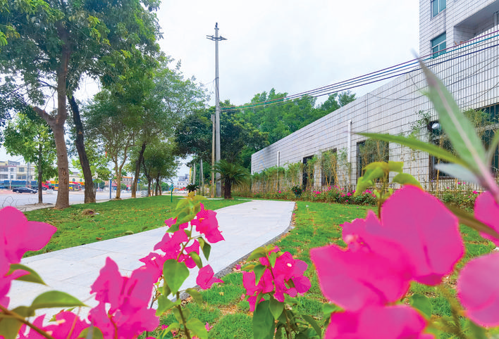 小羅路旁的“口袋公園”花紅草綠,整齊舒適。 惠州日?qǐng)?bào)記者湯渝杭 攝