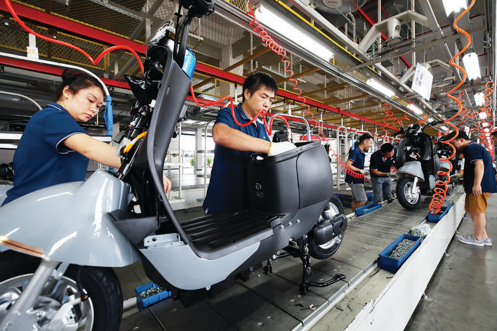 在龍華小刀電動(dòng)車生產(chǎn)車間內(nèi),整個(gè)生產(chǎn)線繁忙有序;葜萑?qǐng)?bào)記者鐘暢新 攝