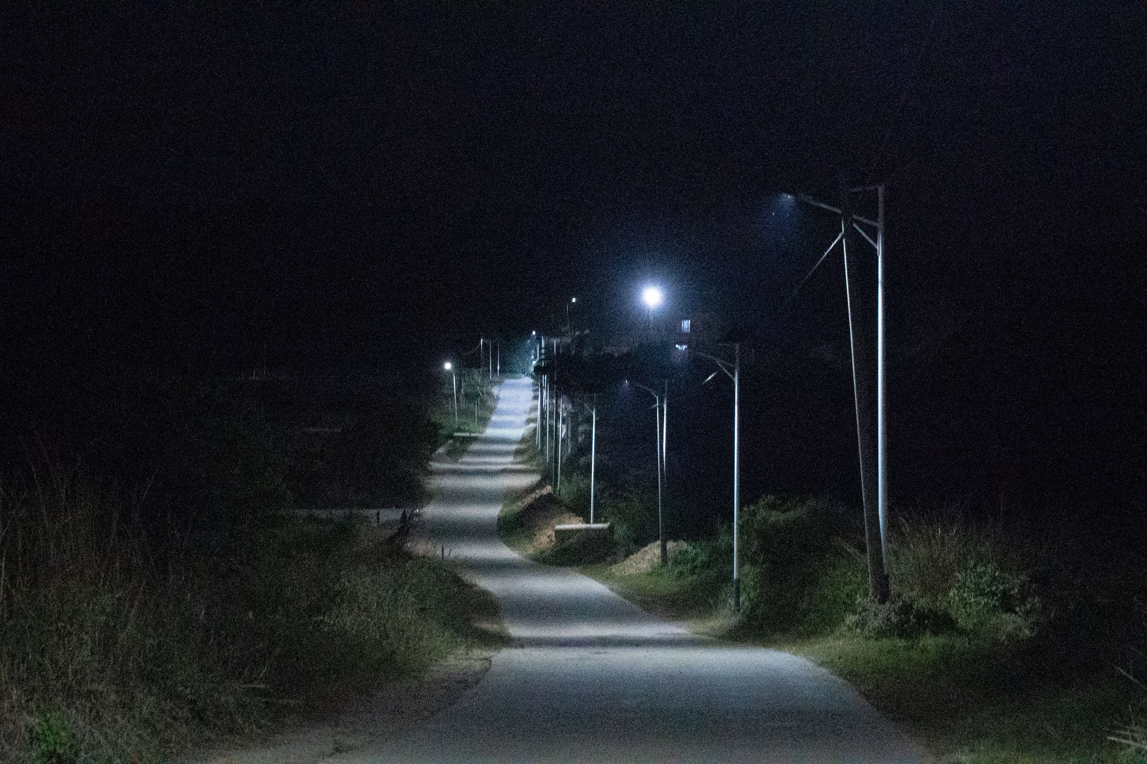 自鄉(xiāng)村振興戰(zhàn)略實(shí)施以來,一盞盞太陽(yáng)能路燈開始矗立在觀音閣的村頭巷尾。從空中俯瞰,如星星般的路燈點(diǎn)綴著鄉(xiāng)村的夜空;漫步在村道上,沿著村道向前延伸的一束束燈光,照亮了夜歸人的回家路;走在路燈下,敞亮的燈光不僅照亮了路面,還照進(jìn)了群眾的心坎……