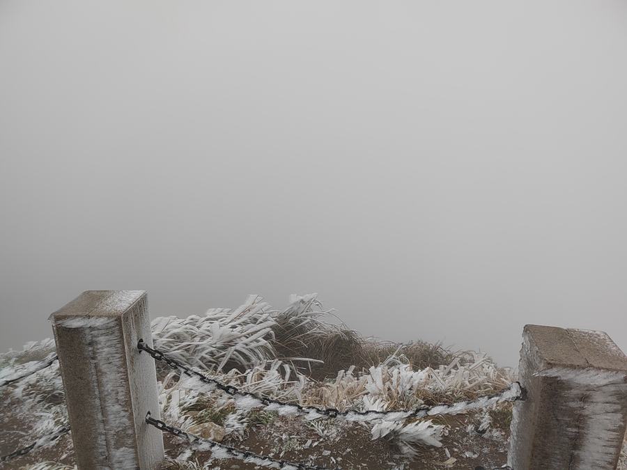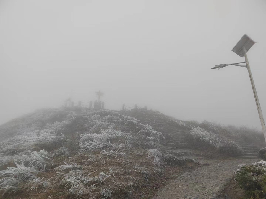 飛云頂?shù)臉?biāo)牌冰結(jié)得更厚。