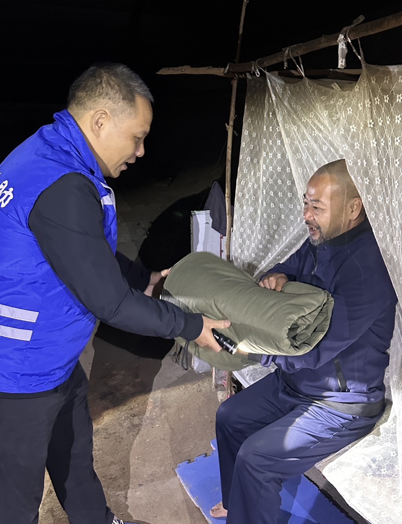 臨時遇困群眾收到御寒物資。 惠州日報記者黃桃 通訊員朱劍威 攝
