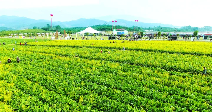 時(shí)值寒冬,這里卻一片花團(tuán)錦簇。這里是博羅縣福田鎮(zhèn)坳嶺村、“環(huán)羅浮山”鄉(xiāng)村振興示范帶的重要節(jié)點(diǎn)村之一。在這里,福田菜心花已盛開如海,空氣中彌漫著一股熟悉而清爽的芬芳。連日來(lái),這一片180畝福田菜心花海,吸引了眾多游人前來(lái)賞花、游玩、品菜心宴。