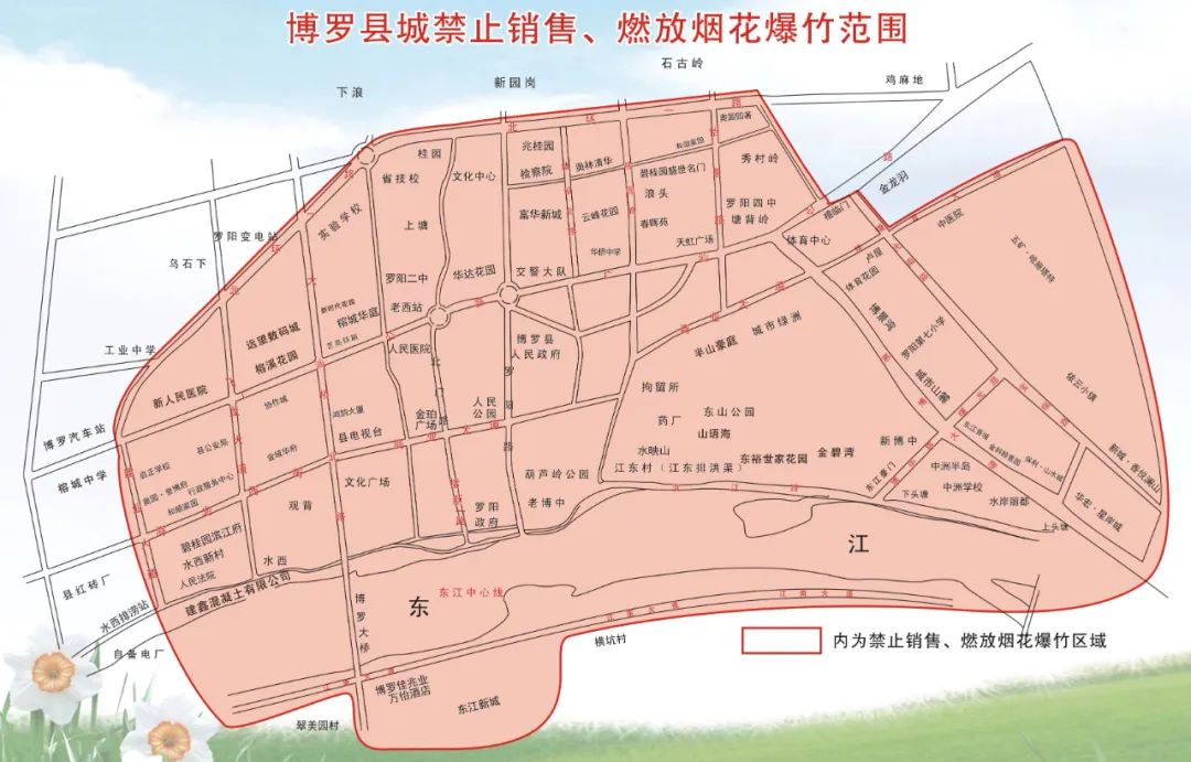 為進(jìn)一步做好博羅縣城禁止銷售和燃放煙花爆竹的管理工作,避免火災(zāi)、爆炸等傷亡事故的發(fā)生,保障人民群眾生命財(cái)產(chǎn)安全和維護(hù)社會秩序,根據(jù)《中華人民共和國治安管理處罰法》《煙花爆竹安全管理?xiàng)l例》等有關(guān)規(guī)定,現(xiàn)就禁止在縣城禁放區(qū)范圍內(nèi)銷售和燃放煙花爆竹有關(guān)事項(xiàng)通告如下: