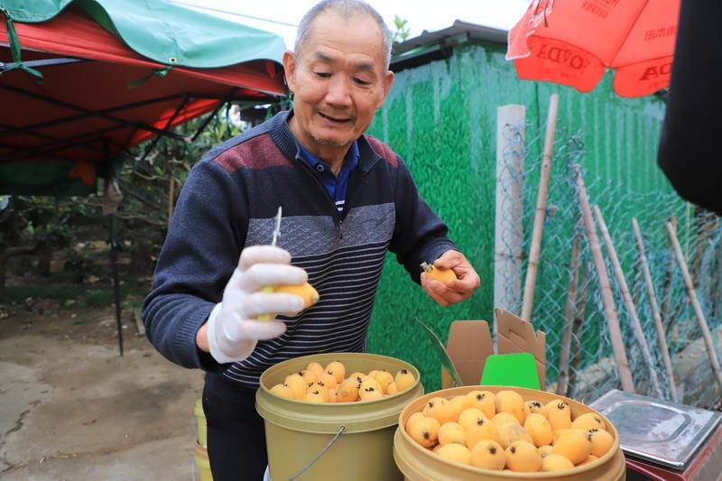 “多年前,家里的枇杷還要運到市場銷售,這些年基本在園子里就賣完了!崩钍逭f,近期賞花的游人多,他們賞完花都要順路嘗下枇杷。