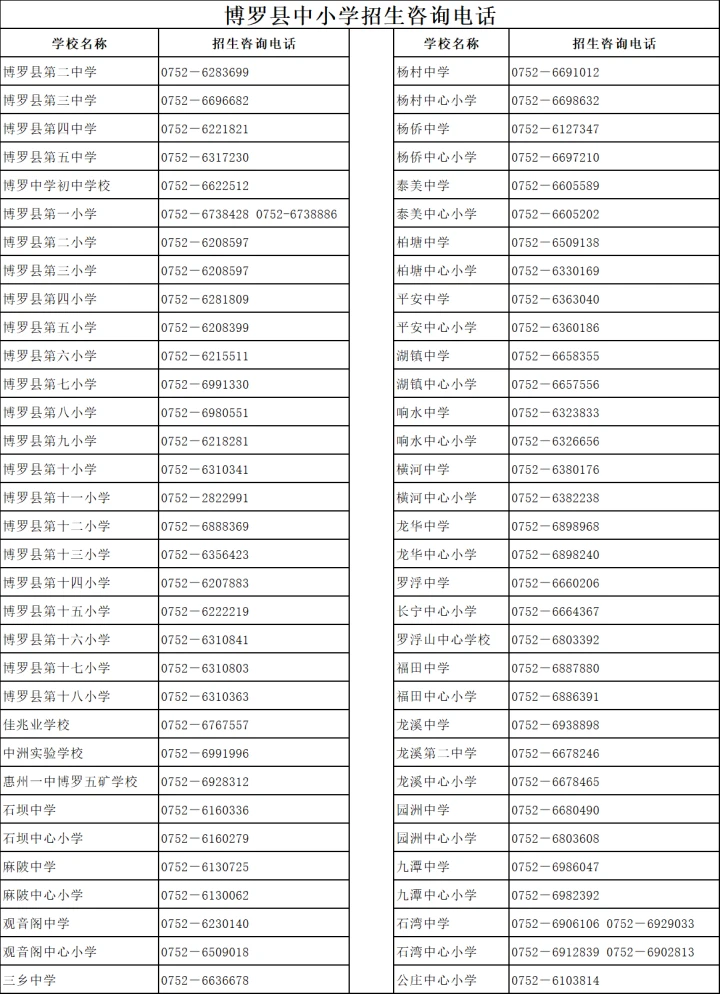 博羅縣教育局教育股:6292146、6297748