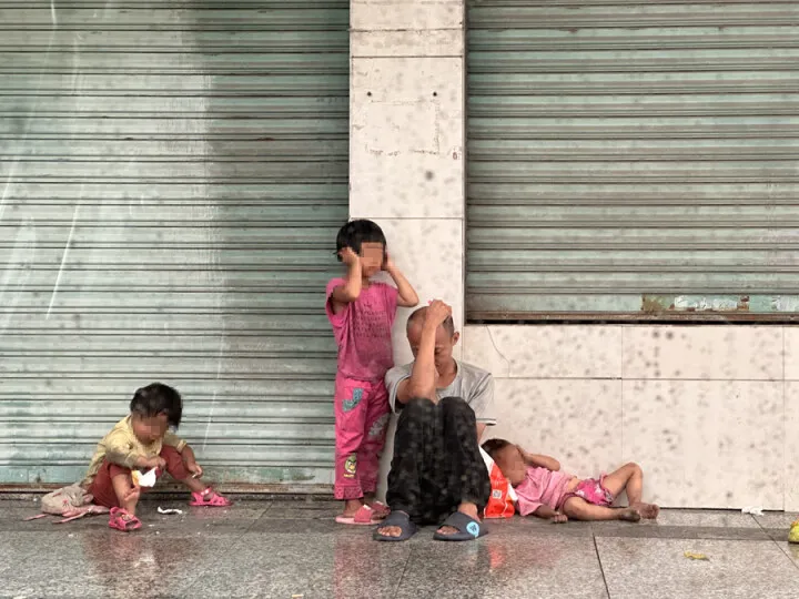 6月7日上午,博羅縣救助管理站工作人員例行進(jìn)行街面巡查工作。在博羅縣郵政局附近,他們發(fā)現(xiàn)一名男子帶著三個小孩坐在街邊,大人和孩子衣衫襤褸,孩子們手腳臟兮兮的,看到這一幕他們留下了個心眼,隨即報警聯(lián)系上當(dāng)?shù)嘏沙鏊拿窬瘜ζ溥M(jìn)行身份甄別。