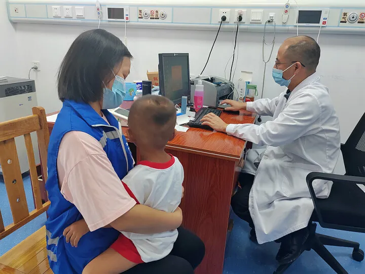 博羅縣救助管理站工作人員帶孩子去看醫(yī)生。
