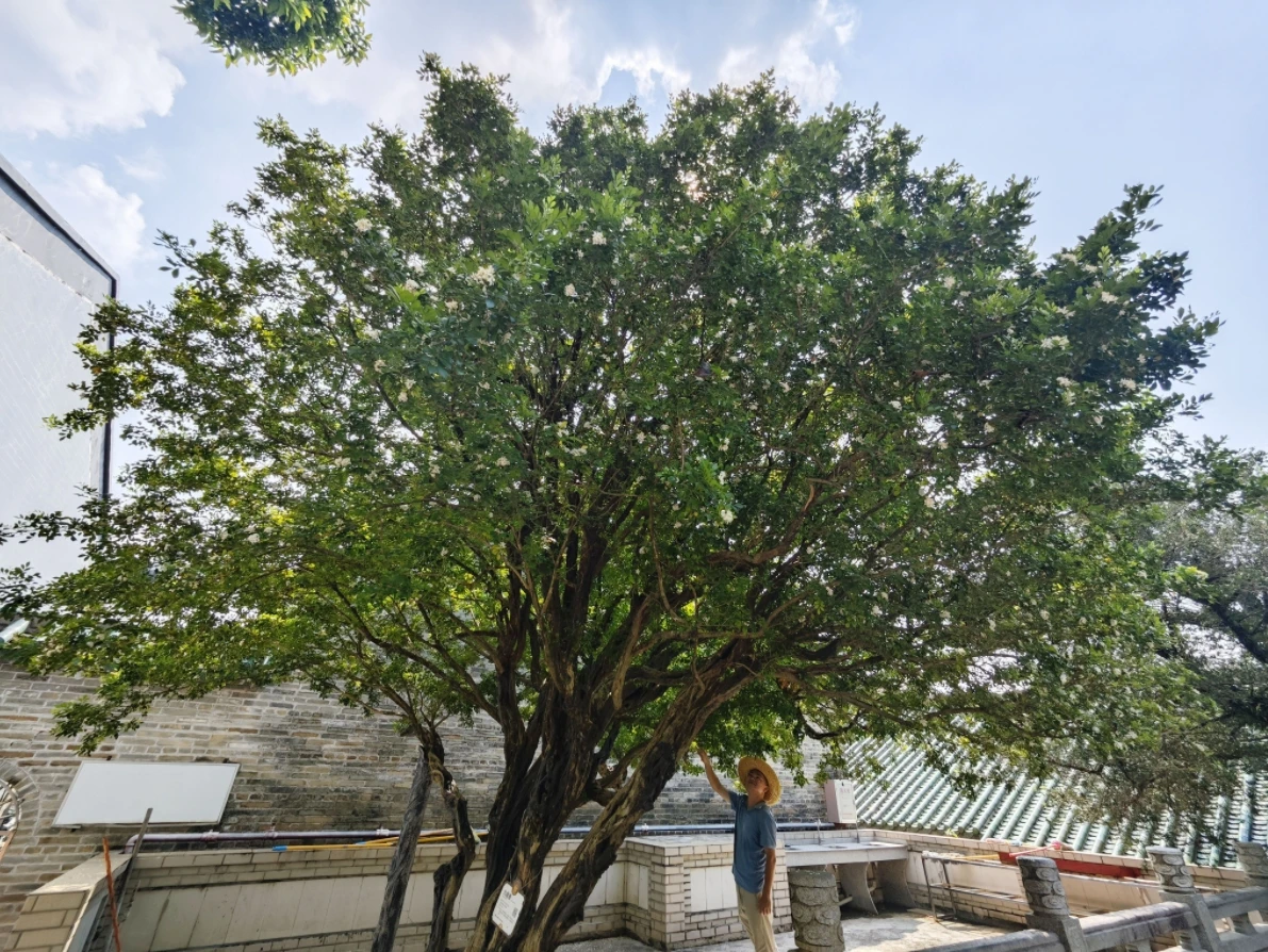 廣東省林業(yè)局、廣東省古樹名木信息管理系統(tǒng)顯示,這株九里香為國家一級古樹,樹齡已達(dá)759年。相傳為南宋年間觀內(nèi)一位道士所種。每當(dāng)秋風(fēng)至,白花競相綻放,香氣襲人。