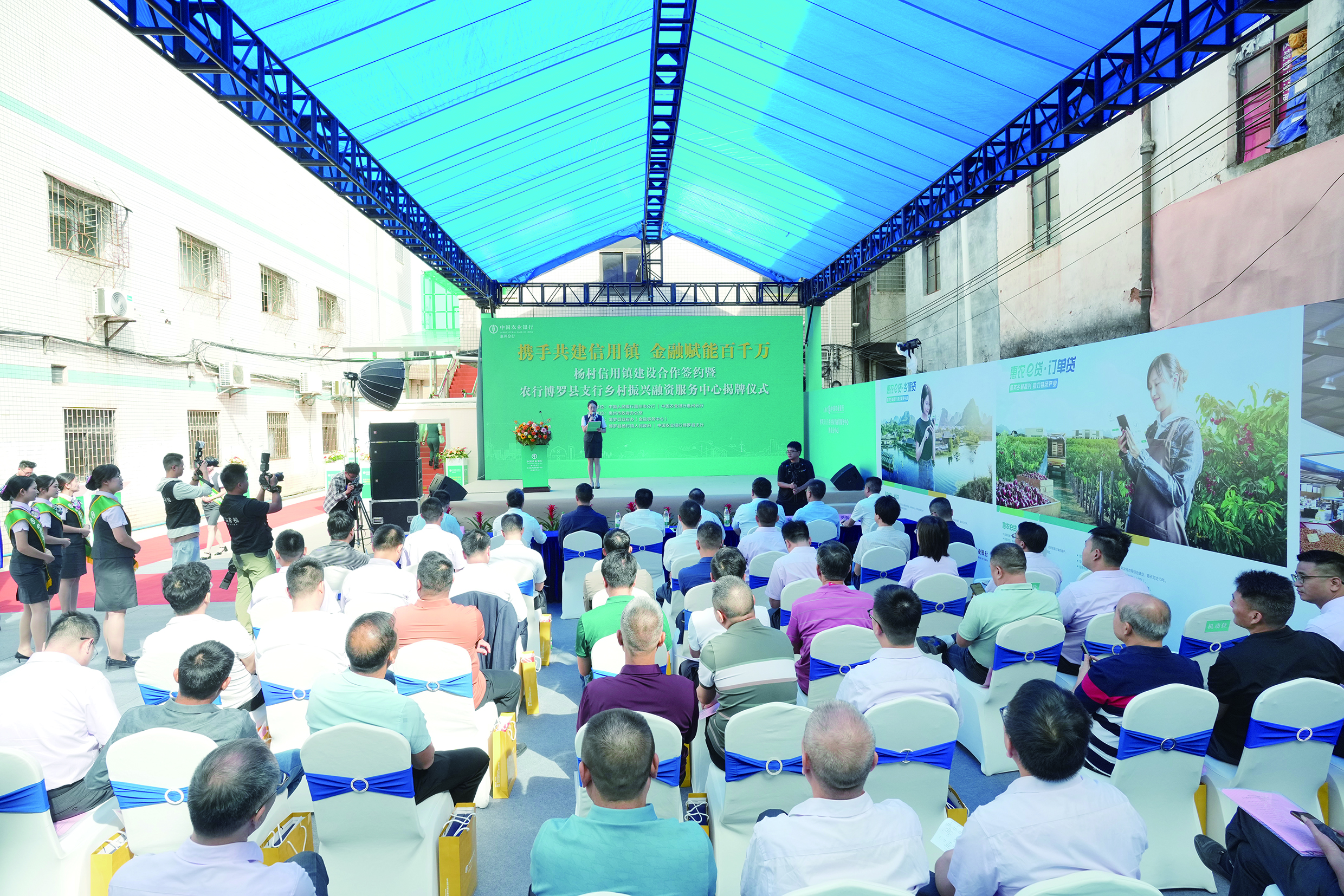 楊村信用鎮(zhèn)建設(shè)合作簽約儀式暨農(nóng)行博羅縣支行鄉(xiāng)村振興融資服務(wù)中心揭牌儀式現(xiàn)場(chǎng)。