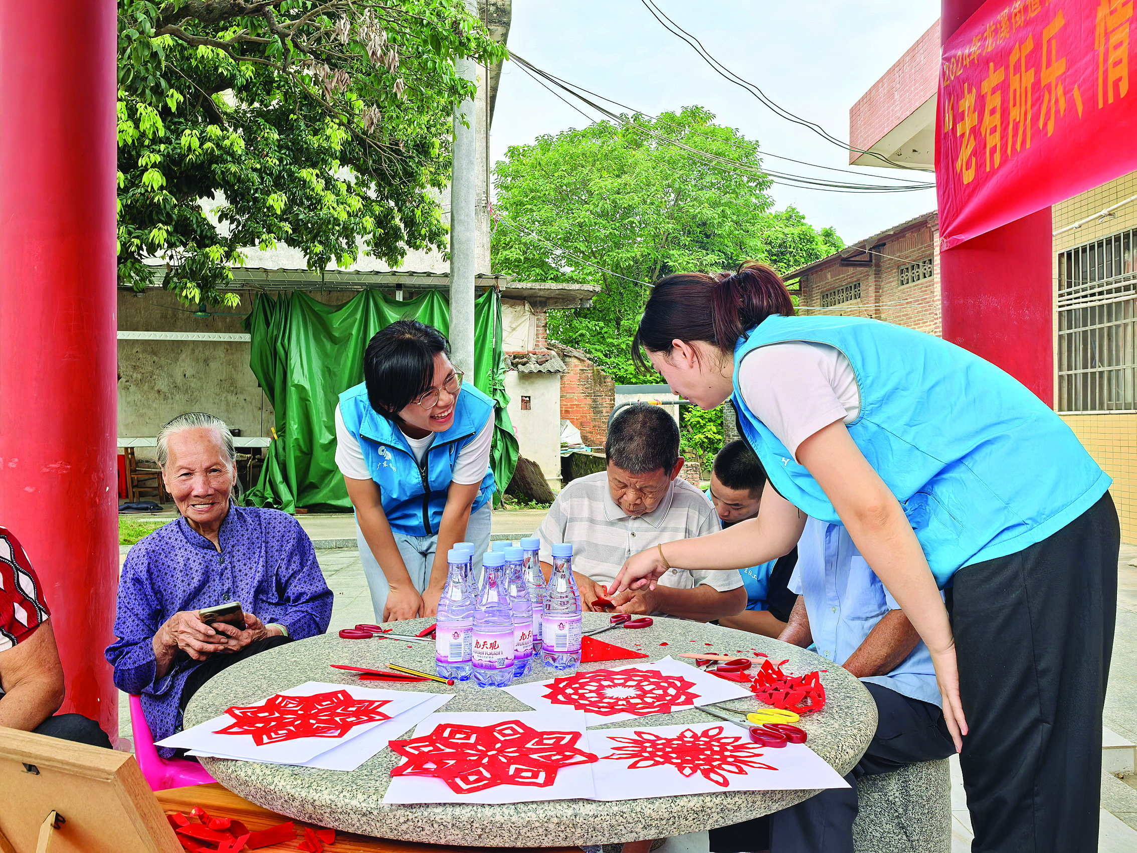社工教老人剪紙,豐富老人精神文化生活。