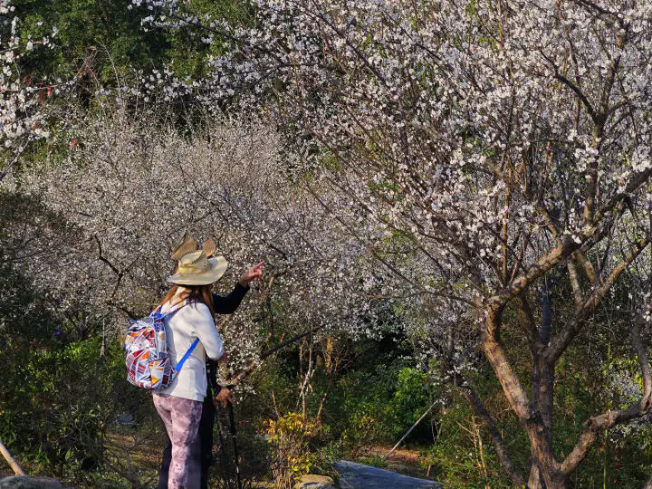 尋梅、探梅、賞梅,恰是冬日里的雅趣。在這寒冬臘月,于千萬花蕾從中偶然尋得一二朵綻放的梅花,細(xì)賞梅花潔白無瑕的花瓣,細(xì)嗅濃郁冷冽的花香。每至賞梅時節(jié),游客們皆被這小而美的梅花深深吸引,紛紛駐足長留,以相機(jī)定格這美好瞬間。