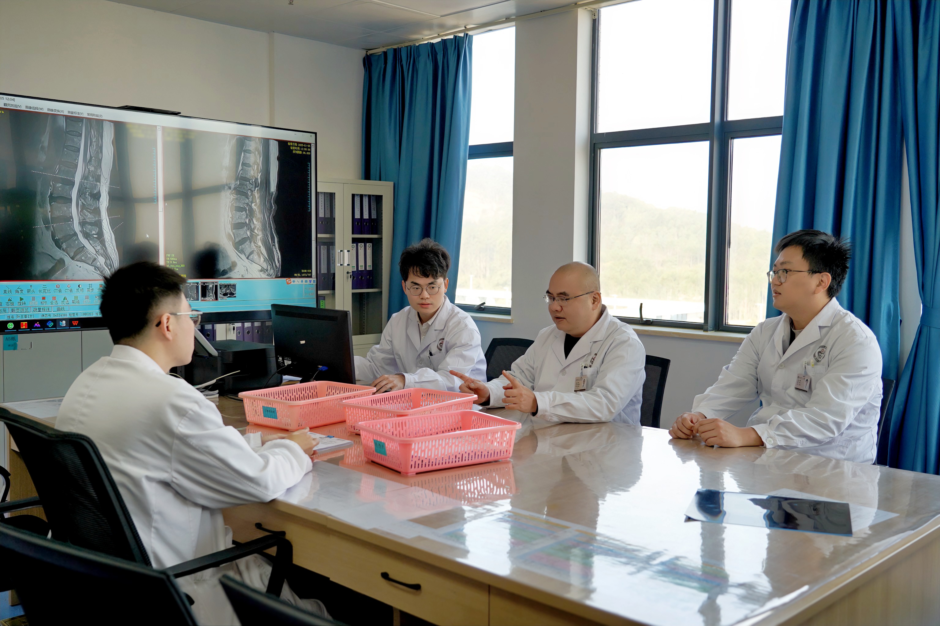 脊柱外科主任姚仕奮與團(tuán)隊(duì)一起討論病例。