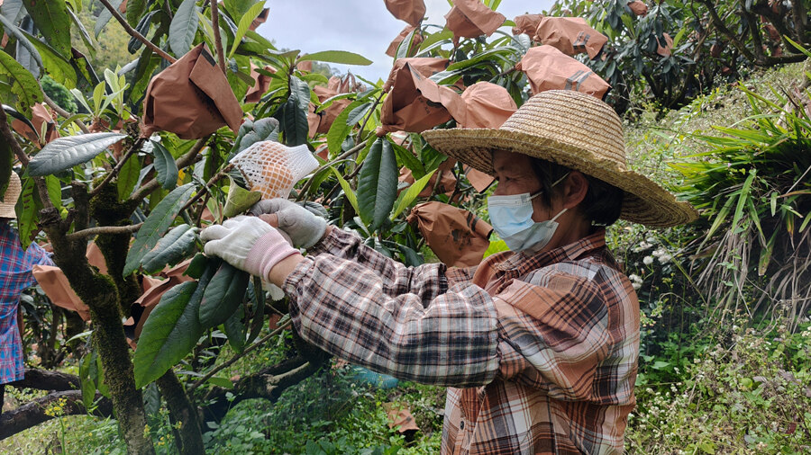 開園當(dāng)天,除了乘興而來的游人外,還有在枇杷園里揮灑汗水的村民。她們是枇杷園雇來幫忙摘果的工人。梅姐就是其中一個(gè)。目前,年過六旬的她,在家照看孫子。她說:“孫子現(xiàn)在上幼兒園,他上學(xué)的時(shí)候,我就出來摘枇杷,等孩子放學(xué)了,我就回家煮飯!薄肮べY日結(jié),一天有140元,還包一餐。”梅姐高興地說,“挺好的,時(shí)間又對(duì)得上,照顧家庭和掙錢兩不誤!
