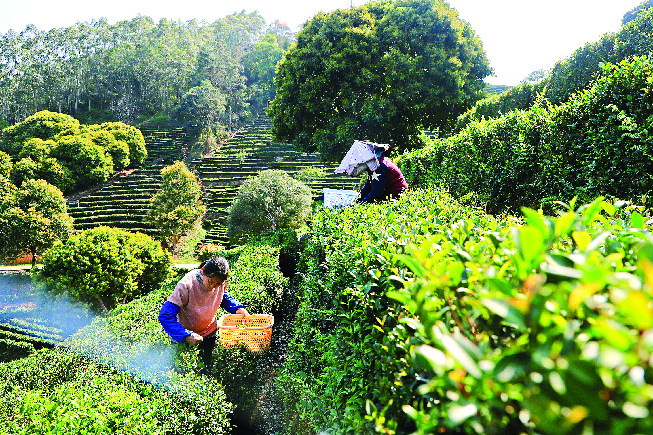 村民在基地采茶實現(xiàn)靈活就業(yè);葜萑請笥浾呃钛辔 攝