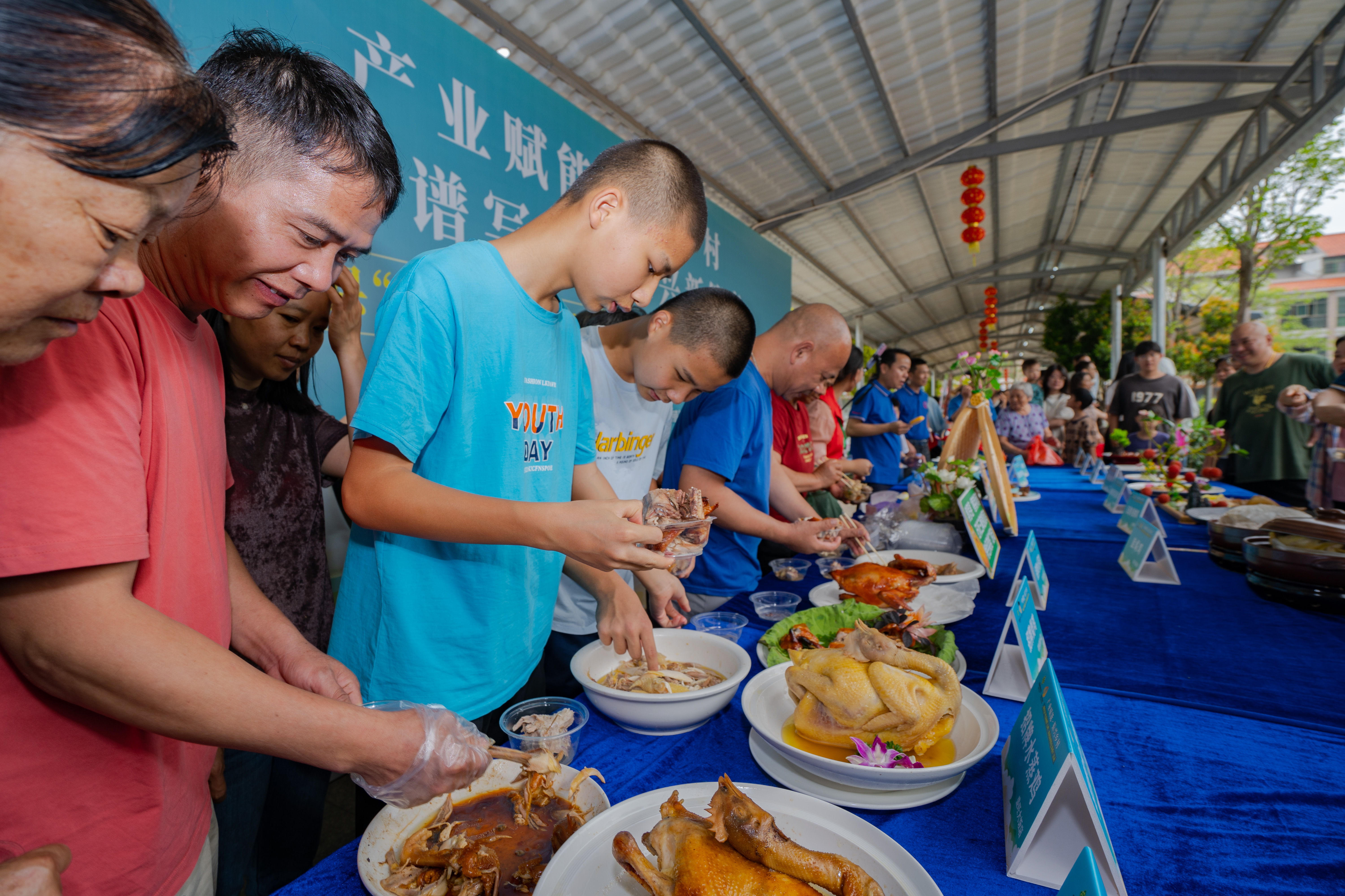 當天,“雞”祥如意游園會成為人氣焦點。文化展示區(qū)通過圖文展板系統(tǒng)呈現(xiàn)三黃胡須雞的養(yǎng)殖歷史、嶺南農(nóng)耕文化脈絡及現(xiàn)代產(chǎn)業(yè)升級路徑,讓群眾與企業(yè)代表清晰感知產(chǎn)業(yè)發(fā)展脈絡;企業(yè)展銷區(qū)匯聚當?shù)佚堫^企業(yè),現(xiàn)場展示雞蛋、蛋卷、鹽焗雞等多種產(chǎn)品,搭建起產(chǎn)銷對接通道;美食廚藝區(qū)邀請10家本地餐飲單位以三黃胡須雞為主材,現(xiàn)場烹制白切雞、松露脆皮雞、菊花撈雞等經(jīng)典與創(chuàng)新菜品,展現(xiàn)石壩三黃胡須雞的多元烹飪可能。