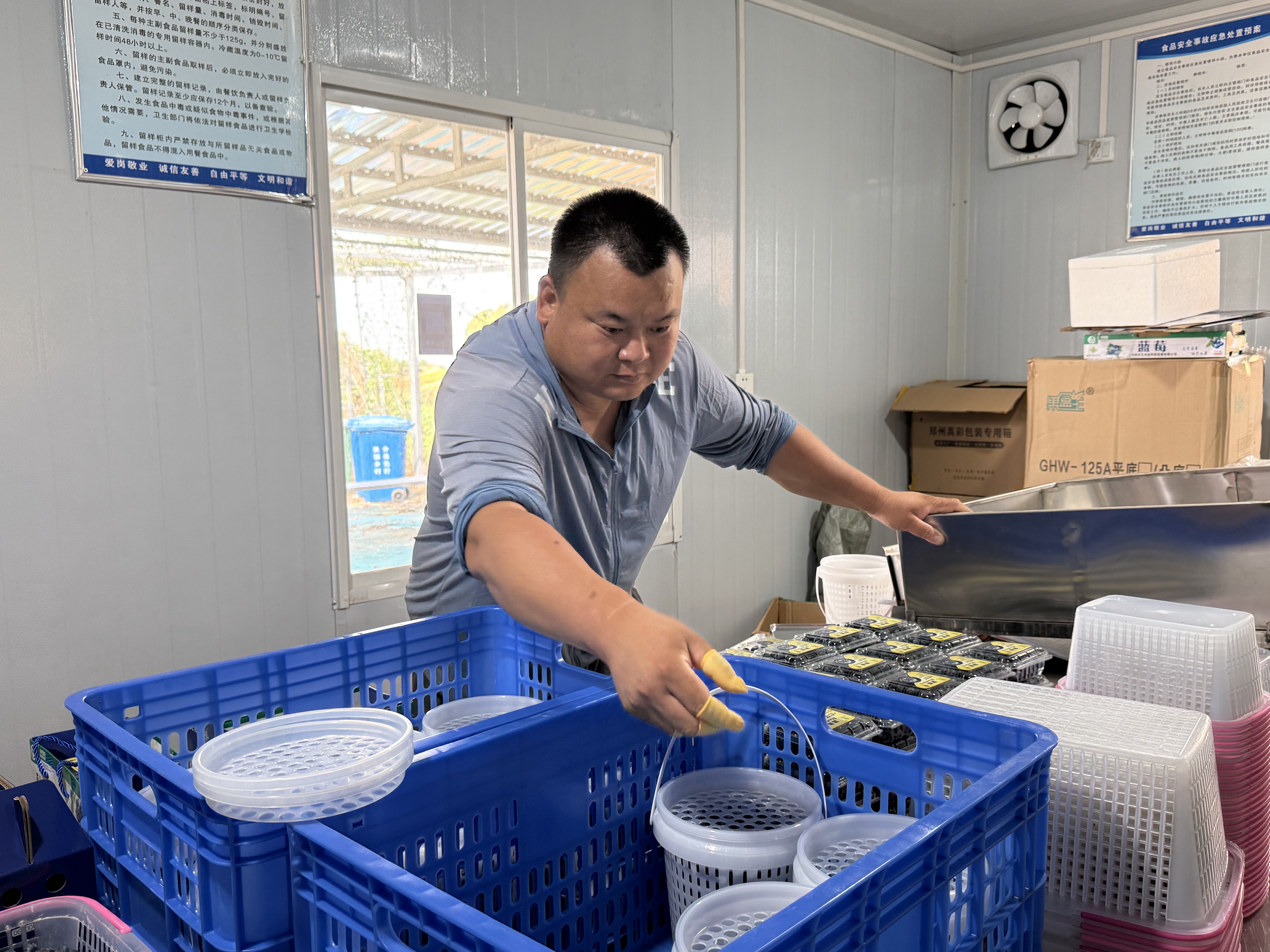工人在包裝藍(lán)莓。