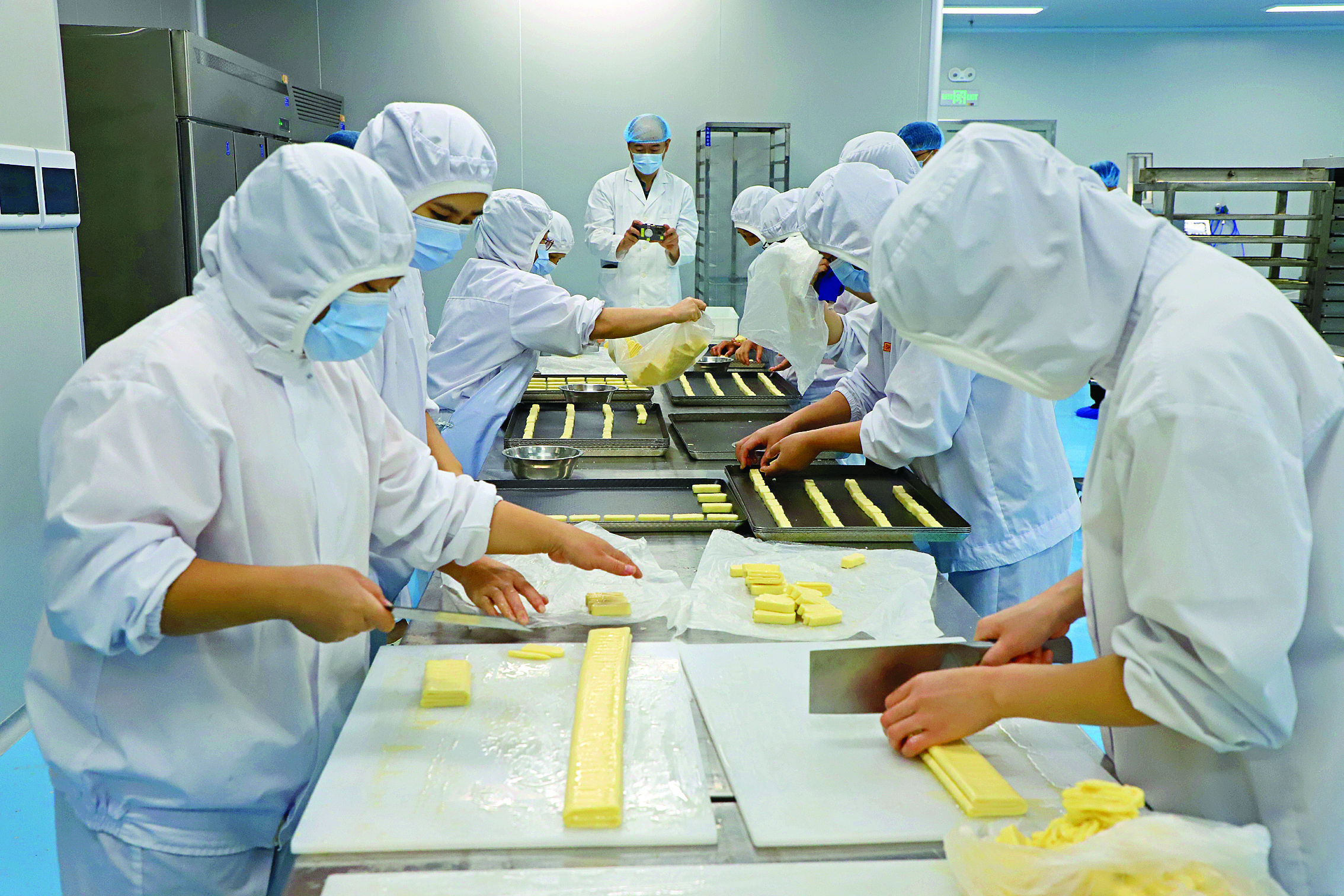 在距離門(mén)店不遠(yuǎn)處,順南食品6萬(wàn)平方米的現(xiàn)代化、智能化工廠內(nèi),多條自動(dòng)化生產(chǎn)線正高速運(yùn)轉(zhuǎn)!澳壳肮S可以日產(chǎn)150噸餡料,產(chǎn)品品類(lèi)達(dá)200多種,2024年產(chǎn)值達(dá)1.2億元,并帶動(dòng)當(dāng)?shù)?00多名群眾在家門(mén)口就業(yè)。”順南食品相關(guān)負(fù)責(zé)人介紹,“鄉(xiāng)鎮(zhèn)市場(chǎng)曾是烘焙產(chǎn)業(yè)的洼地,我們通過(guò)標(biāo)準(zhǔn)化生產(chǎn)和本土化定價(jià),填補(bǔ)了這個(gè)空白!