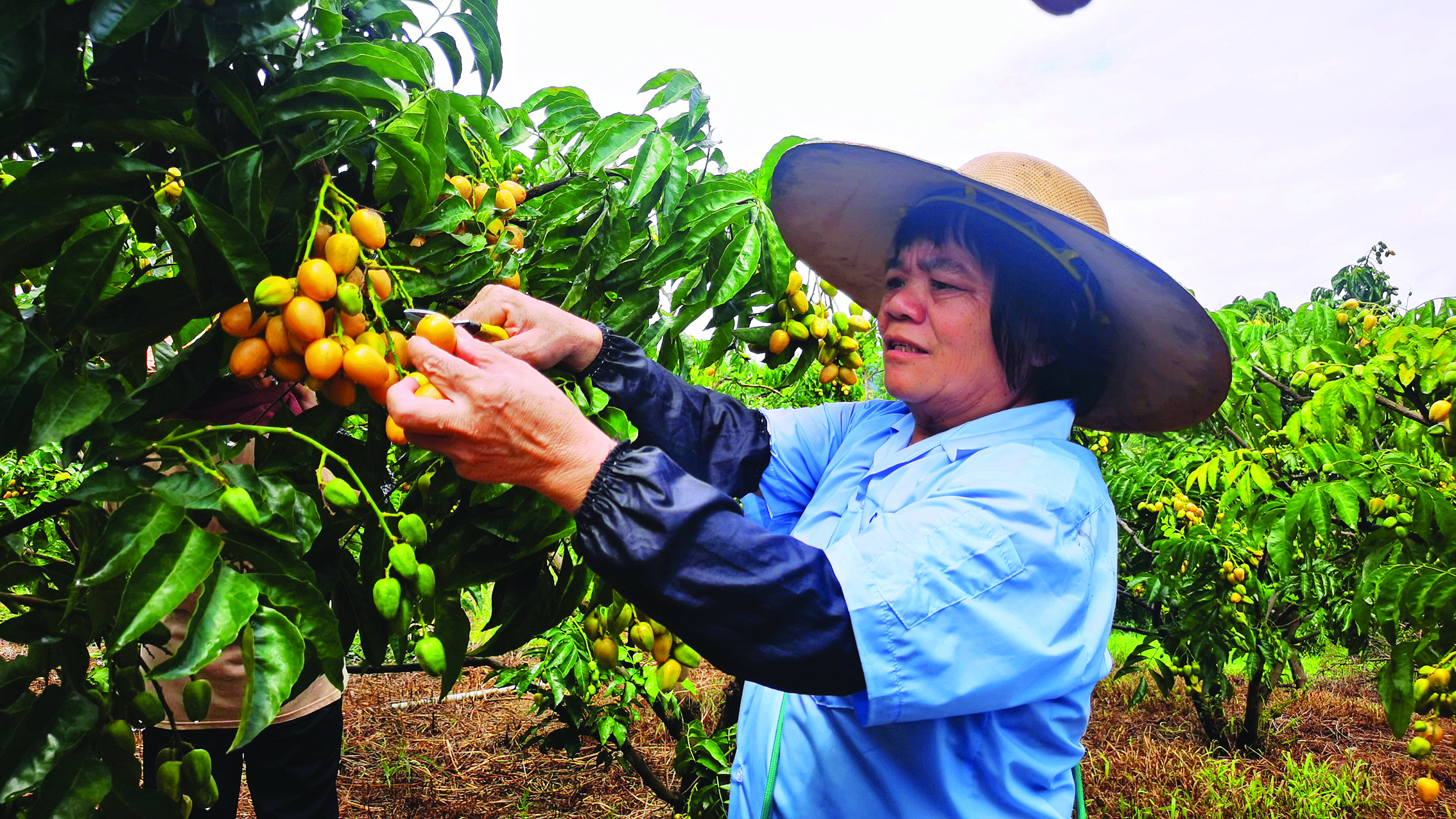 步入果園,黃皮果樹長(zhǎng)勢(shì)旺盛,郁郁蔥蔥的枝葉間,一串串黃皮果悄然完成從翠綠到金黃的蛻變。村民們頭戴帽子、腰挎籃子,穿梭在果林里,嫻熟地將一顆顆金黃飽滿的黃皮果剪下,輕輕放入籃中。果園負(fù)責(zé)人譚海養(yǎng)介紹:“黃皮剛進(jìn)入成熟期,我們會(huì)根據(jù)果實(shí)的成熟度分批采摘,保證每一顆果都能呈現(xiàn)出上佳口感。”