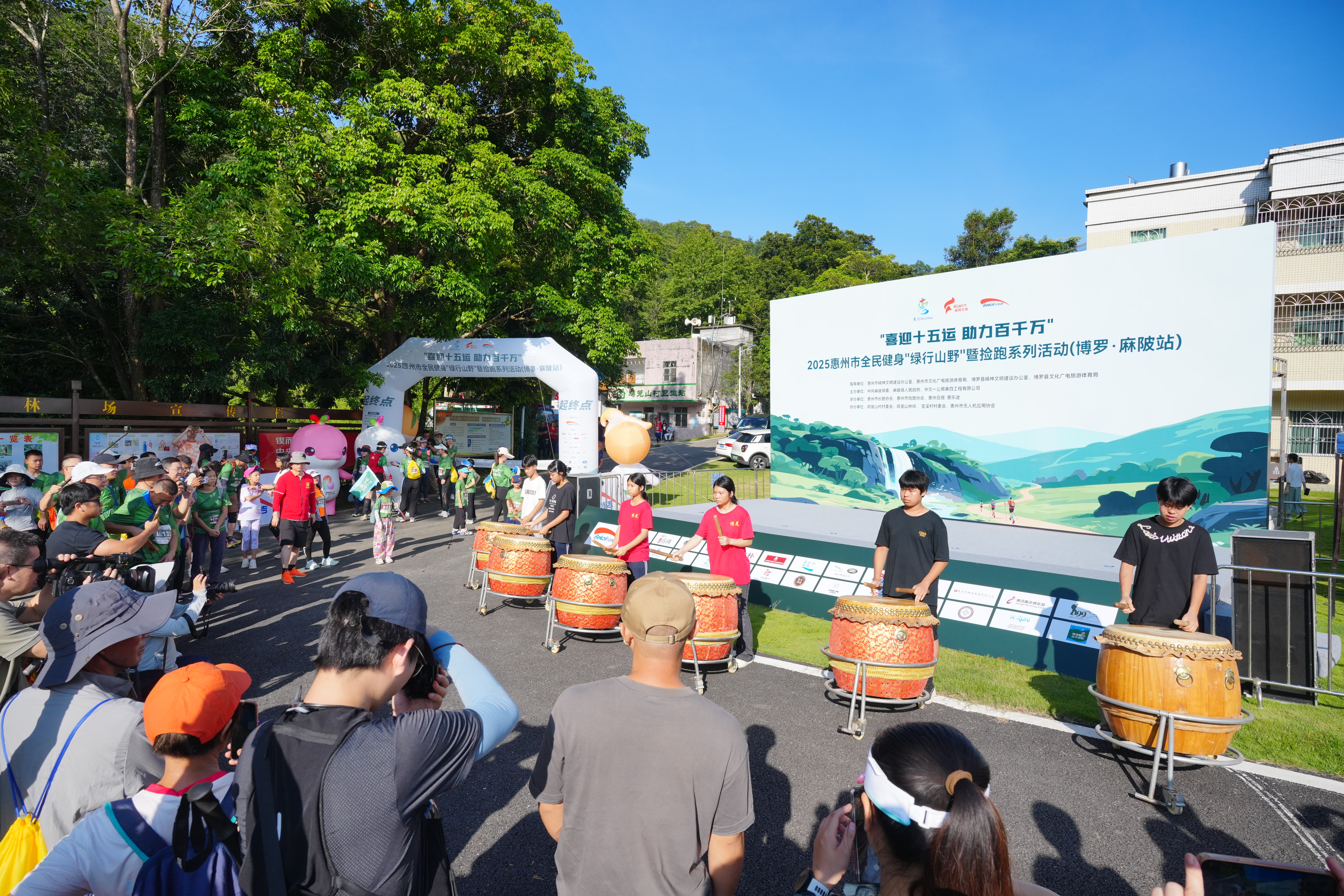 塘尾鑼鼓隊在2025惠州市全民健身“綠行山野”暨撿跑系列活動(博羅·麻陂站)啟動儀式上表演;葜萑請笥浾咧荛 攝
