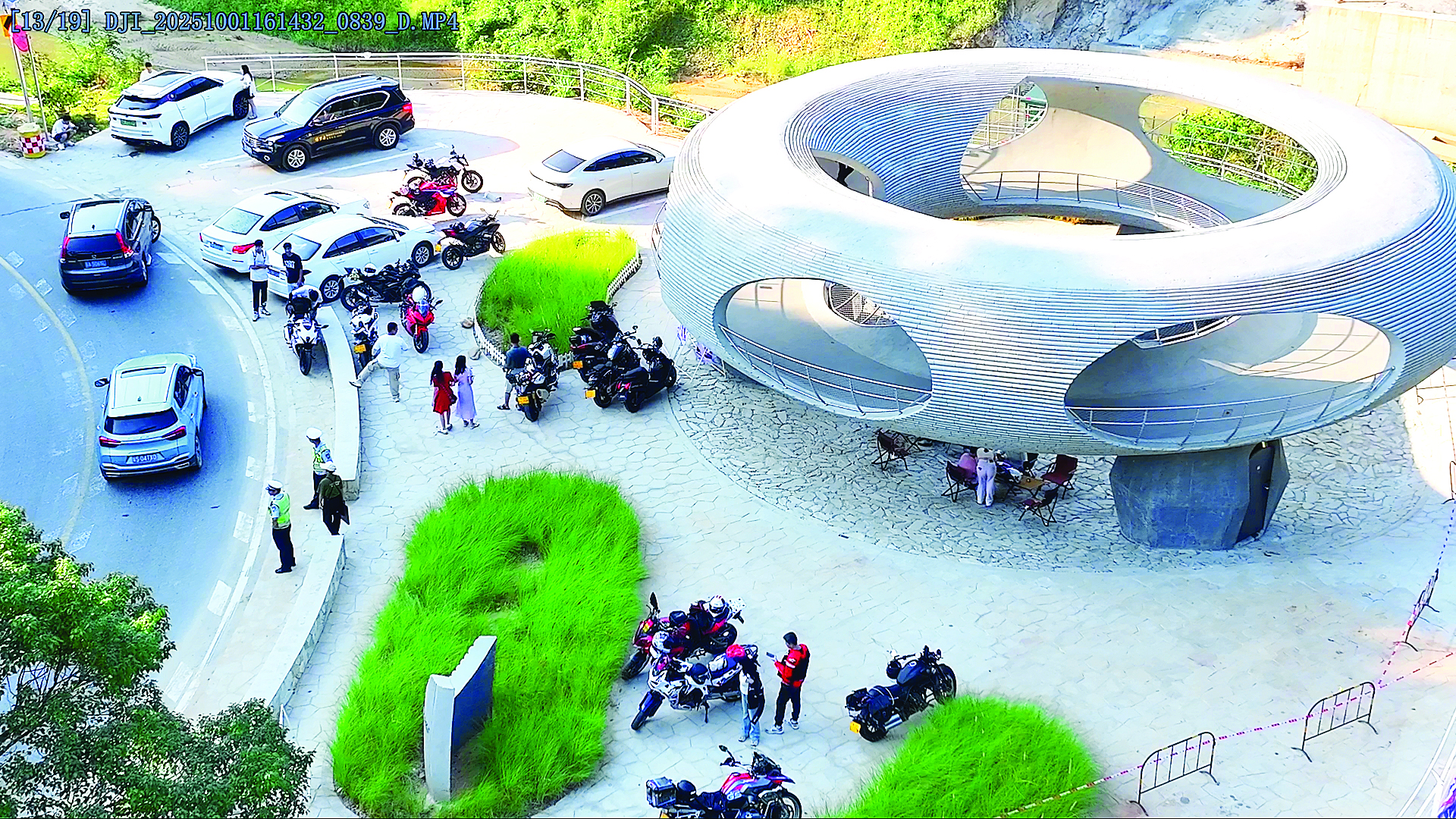 218最美旅游公路沿途設(shè)置的藝術(shù)裝置,既是網(wǎng)紅打卡點(diǎn),也是游人休憩的好去處。在博羅段中,綠屏石灘藝術(shù)裝置尤為吸睛。直徑16.5米的觀景環(huán)凌空懸于峭壁邊緣,下沉廣場(chǎng)與漂浮平臺(tái)構(gòu)成的雙層標(biāo)高景框,恰好將山水風(fēng)光框成一幅流動(dòng)的畫(huà),成為游客定格美景的絕佳選擇。休憩區(qū)里,摩旅愛(ài)好者與騎行愛(ài)好者圍坐閑談,手捧特色豆花拿鐵,你一言我一語(yǔ)分享著沿途所見(jiàn)的秀麗風(fēng)光。“一路風(fēng)景絕了!各個(gè)驛站和藝術(shù)裝置的間距特別合理,騎累了就坐下喝杯咖啡、看看山景,這種邊騎邊玩的愜意,是其他路線比不了的!彬T行愛(ài)好者鄧先生贊不絕口。他說(shuō),騎行群里常有人分享這條公路的美景與攻略,趁著國(guó)慶假期,他立刻約上好友來(lái)一場(chǎng)深度體驗(yàn)。羅浮山茶、東坡茶樂(lè)事等本地特色飲品,剛推出就成了游客爭(zhēng)先品嘗的“爆款”。