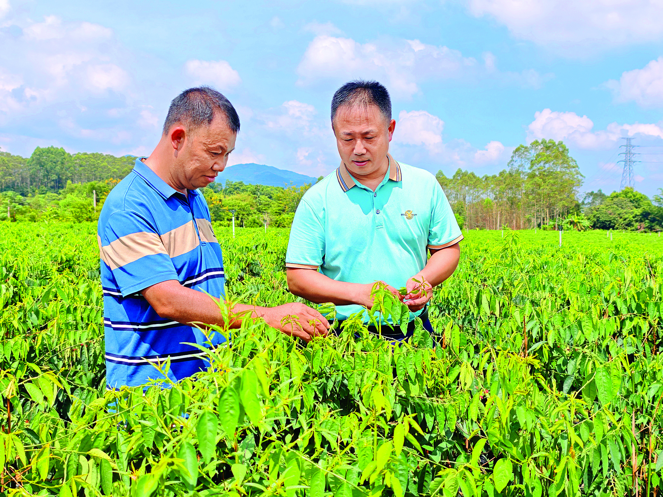 2024年初,一次外地調(diào)研讓他與“樹仔菜”結(jié)緣。樹仔菜也叫天綠香、五指山野菜等,是一種常綠灌木,以嫩梢為食用部位,故得名。近年來(lái),樹仔菜成為珠三角餐飲市場(chǎng)的“寵兒”,不僅價(jià)格堅(jiān)挺、需求旺盛,而且生長(zhǎng)快、產(chǎn)量穩(wěn),更與新塘村的土壤氣候高度契合。“這不就是為新塘村量身定制的‘致富菜’!”鐘建周眼前一亮。