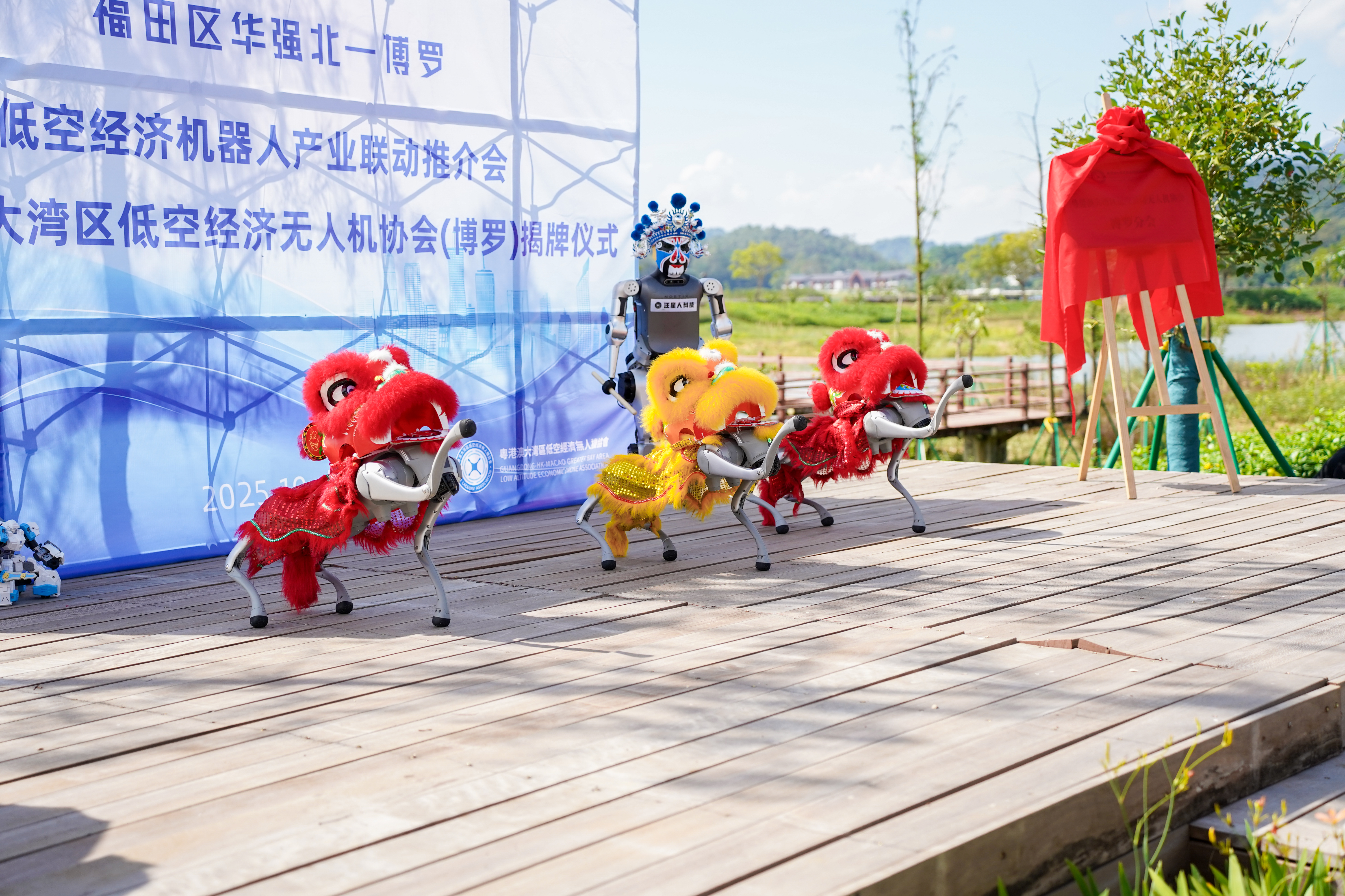 當(dāng)天,航模表演拉開活動序幕。航模飛向天空,由航模牽引的標(biāo)語“鵬飛深圳低空,首善福田經(jīng)濟(jì)”在陽光下熠熠生輝,象征深圳福田與博羅在低空經(jīng)濟(jì)領(lǐng)域的深度聯(lián)動正式啟航。同時,三臺機(jī)器狗配合音樂節(jié)奏靈活舞動,展示其在復(fù)雜環(huán)境下的卓越運動能力與穩(wěn)定性。展演充分展現(xiàn)粵港澳大灣區(qū)在低空經(jīng)濟(jì)與機(jī)器人領(lǐng)域的創(chuàng)新實力。