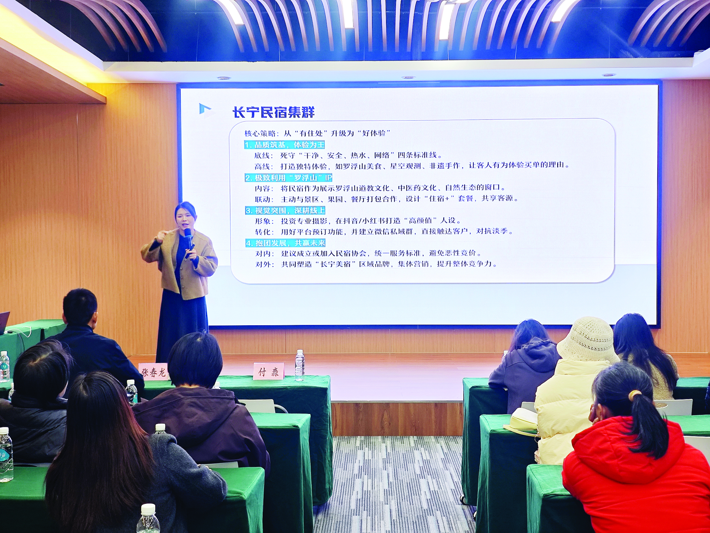 博羅縣人才驛站相關(guān)負(fù)責(zé)人介紹,本次培訓(xùn)是深入貫徹落實(shí)博羅縣“百千萬工程”工作要求的具體實(shí)踐,也是鄉(xiāng)村振興人才驛站服務(wù)功能的精準(zhǔn)落地!拔覀兇蚱苽鹘y(tǒng)培訓(xùn)模式,將課堂延伸到鎮(zhèn)村一線,就是要精準(zhǔn)對(duì)接本土人才發(fā)展需求,通過行業(yè)專家授課提升從業(yè)人員專業(yè)能力,強(qiáng)化人才驛站品牌效能,讓人才紅利真正轉(zhuǎn)化為鄉(xiāng)村振興的發(fā)展動(dòng)能,為區(qū)域高質(zhì)量發(fā)展提供堅(jiān)實(shí)保障!遍L(zhǎng)寧鎮(zhèn)相關(guān)負(fù)責(zé)人介紹,長(zhǎng)寧鎮(zhèn)民宿產(chǎn)業(yè)正處于提質(zhì)升級(jí)的關(guān)鍵階段,如何通過互聯(lián)網(wǎng)放大優(yōu)質(zhì)資源效益是產(chǎn)業(yè)發(fā)展的核心命題。