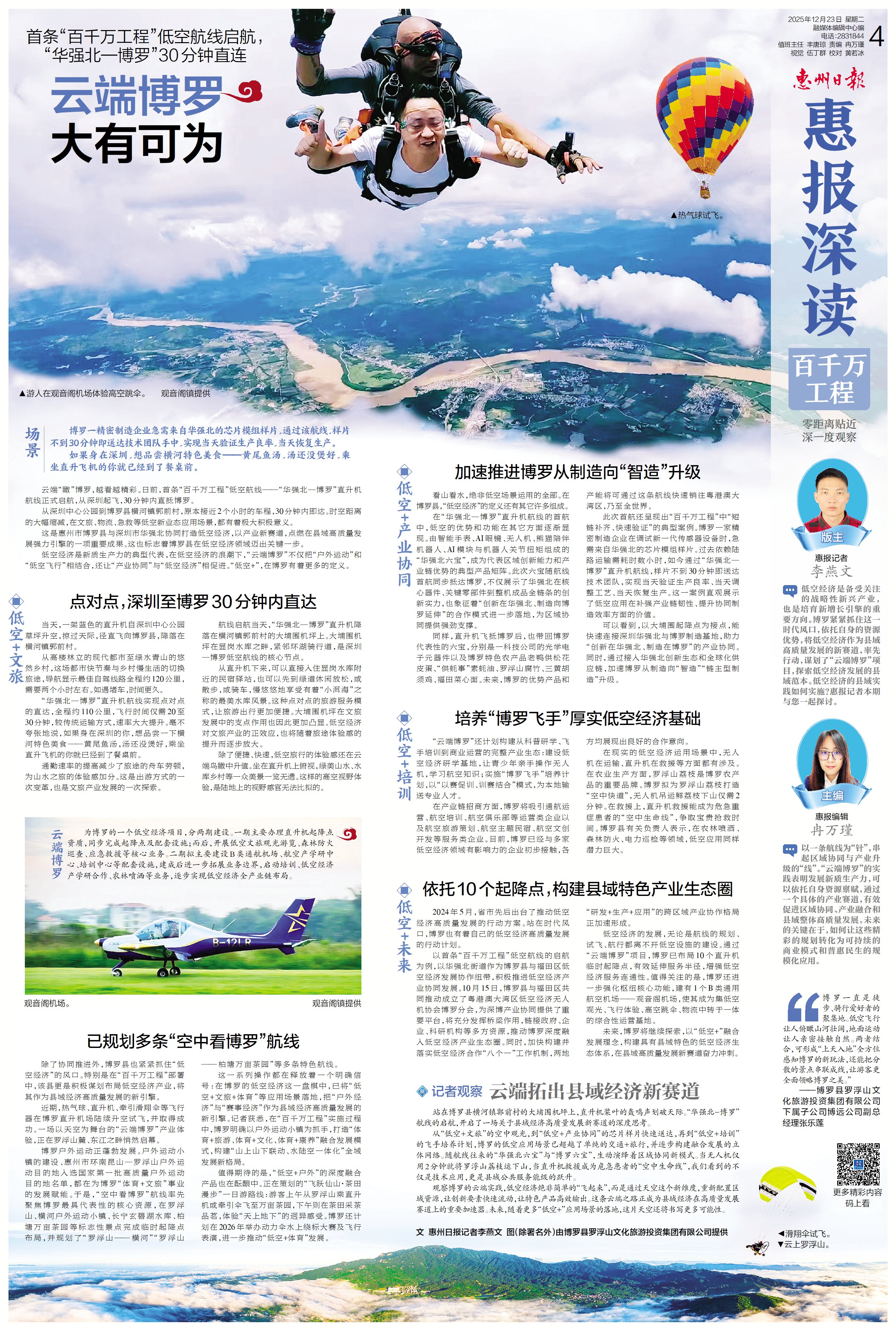 低空經(jīng)濟(jì)是新質(zhì)生產(chǎn)力的典型代表,在低空經(jīng)濟(jì)的浪潮下,“云端博羅”不僅把“戶外運(yùn)動(dòng)”和“低空飛行”相結(jié)合,還讓“產(chǎn)業(yè)協(xié)同”與“低空經(jīng)濟(jì)”相促進(jìn)!暗涂+”,在博羅有著更多的定義。
