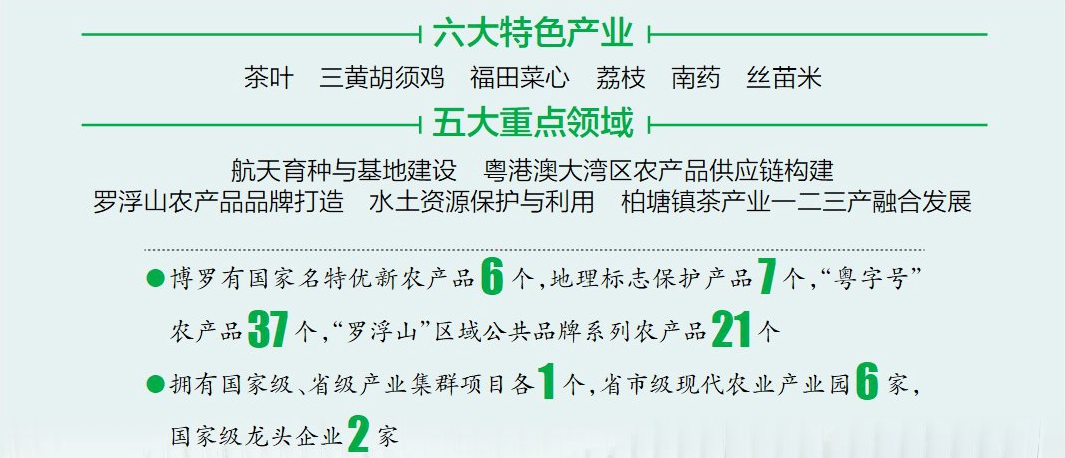 省農(nóng)科院和博羅縣將圍繞茶葉、三黃胡須雞、福田菜心、荔枝、南藥、絲苗米六大特色產(chǎn)業(yè)技術(shù)提升以及航天育種與基地建設(shè)、粵港澳大灣區(qū)農(nóng)產(chǎn)品供應(yīng)鏈構(gòu)建、羅浮山農(nóng)產(chǎn)品品牌打造、水土資源保護(hù)與利用、柏塘鎮(zhèn)茶產(chǎn)業(yè)一二三產(chǎn)融合發(fā)展五大重點(diǎn)領(lǐng)域,系統(tǒng)部署科技支撐與服務(wù)內(nèi)容。