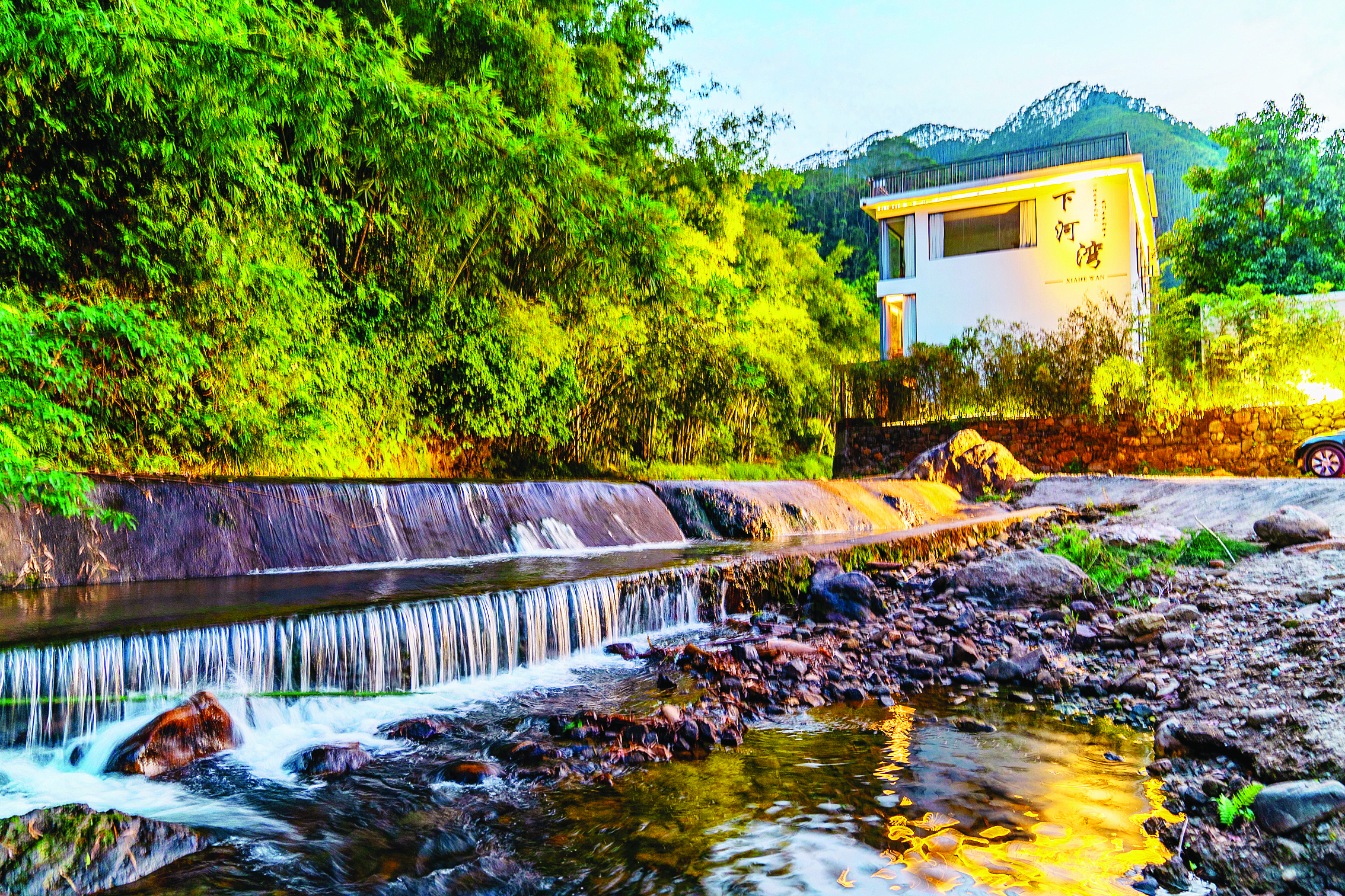 下河灣民宿位于羅浮山下的橫河鎮(zhèn),群山環(huán)抱,竹林幽幽,小溪潺潺,18間客房推窗見山見水。靜謐休閑的環(huán)境讓這里成為珠三角地區(qū)市民切換都市快節(jié)奏生活的理想之選。