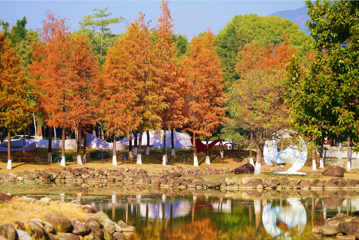 晴冬時節(jié),羅浮山文化廣場迎來最美“換裝季”——成片落羽杉褪去蒼翠,換上熾烈艷紅盛裝,在澄澈暖陽下勾勒出遒勁輪廓,成為冬日里最吸睛的風景線。