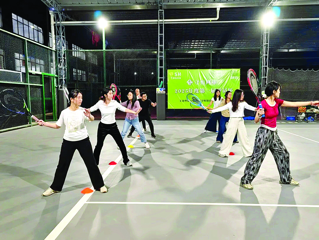 園洲青年上夜校學(xué)打網(wǎng)球。圖片由園洲鎮(zhèn)提供